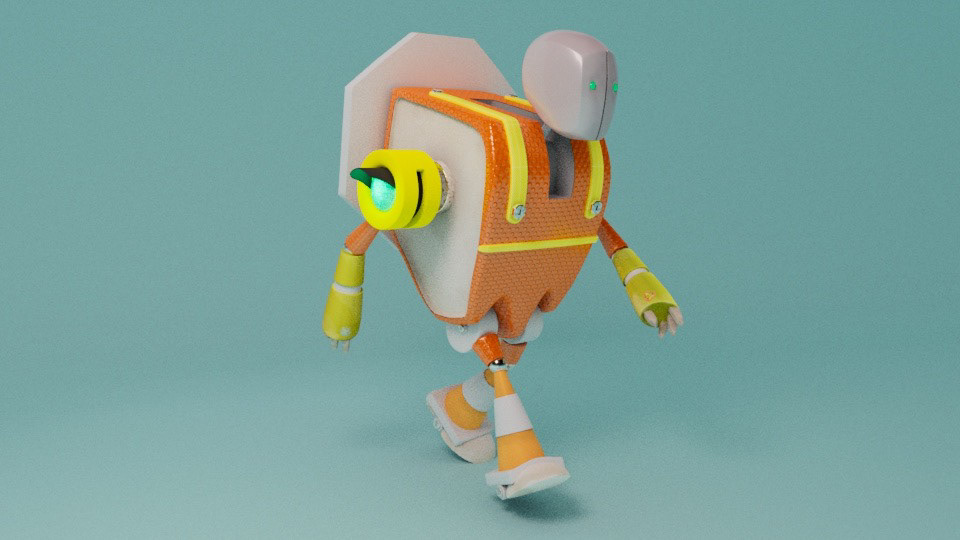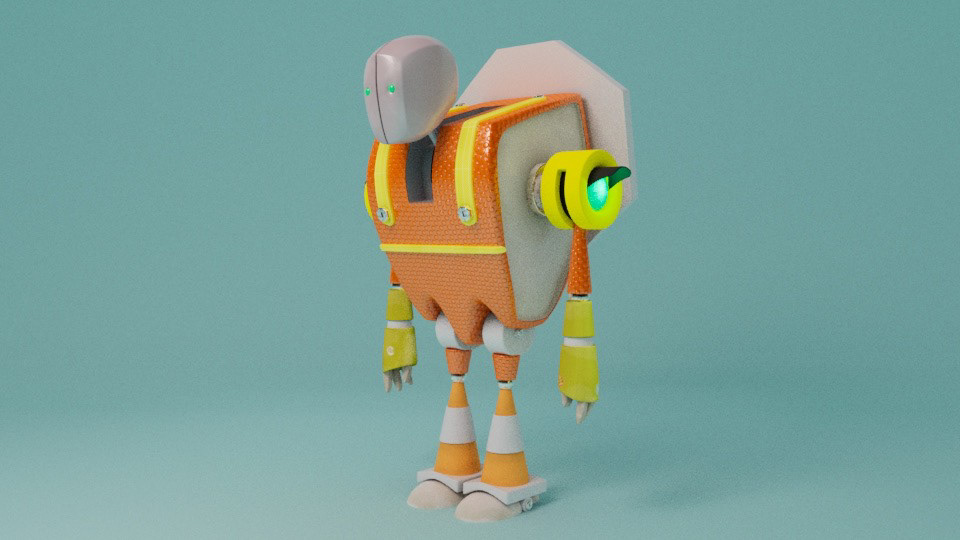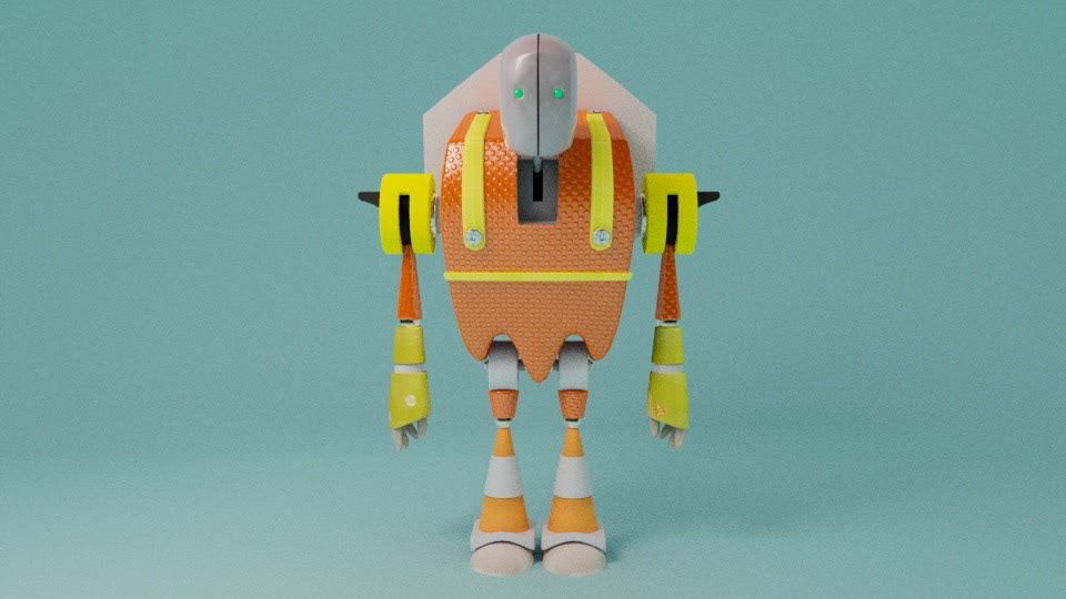 A robot designed to help children cross the street! Modeling, texturing, lighting, and rendering all done in Maya.